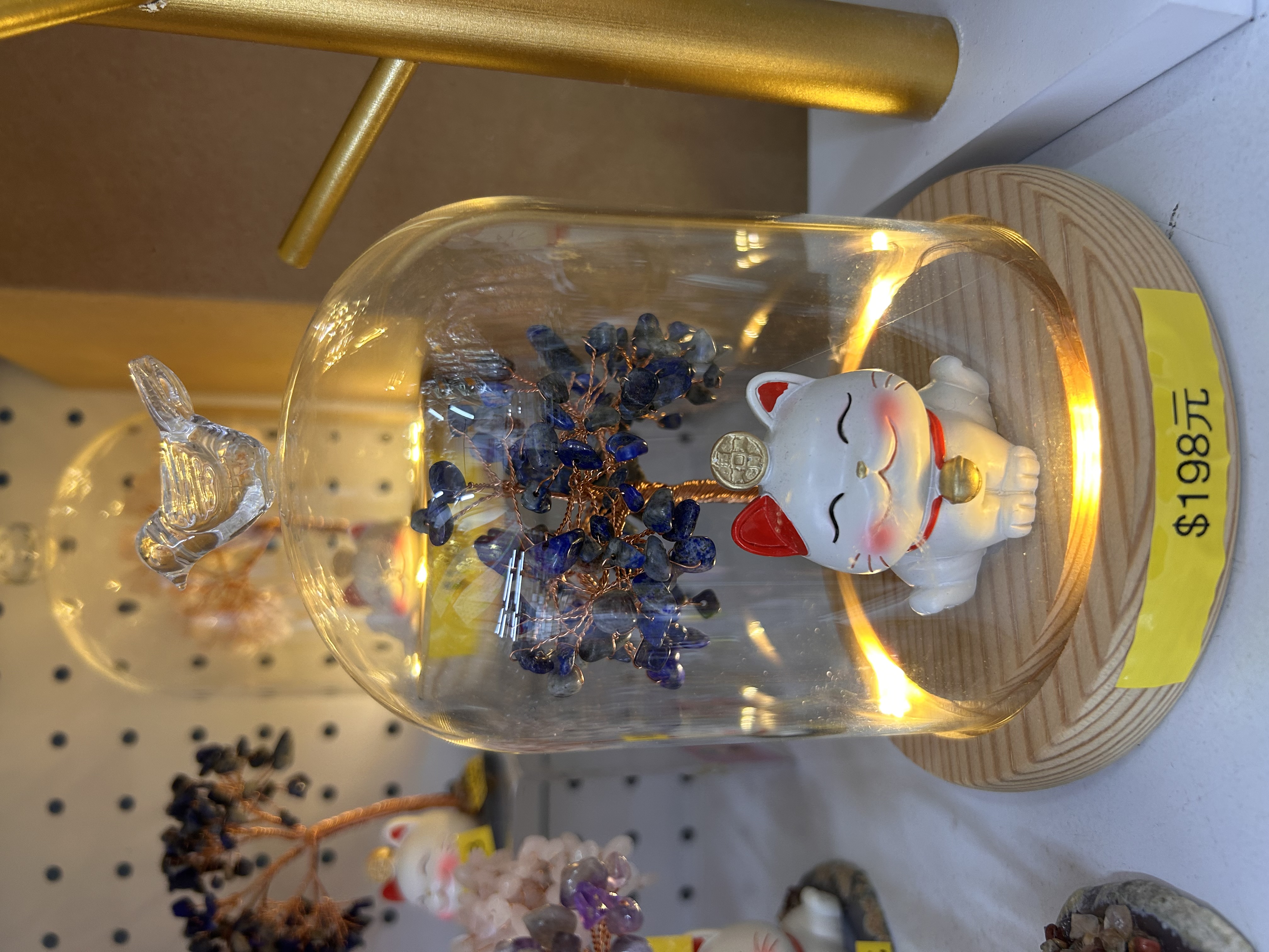 天然石 | 送玻璃蓋展示 | 水晶碎石 | 能量生命樹 | 擺飾 | 招財水晶樹 水晶樹 | 笑微微招財貓