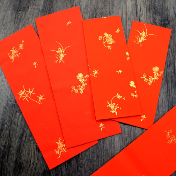 傳統創意揮春紙 四字 – 梅蘭菊竹款 (20張庄) (尺寸: 17 x 34cm) (適用:過年、過節、結婚、喬遷、活動等) (歡迎學校, 機構 或 公司 訂購。 價錢請whatsapp 59332242 查詢)