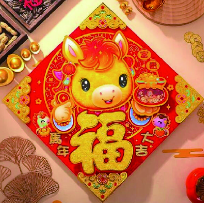 毛毛開運金馬活動元寶 揮春 (馬年大吉)