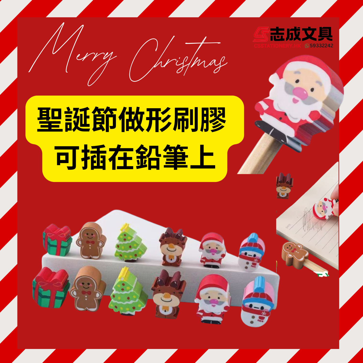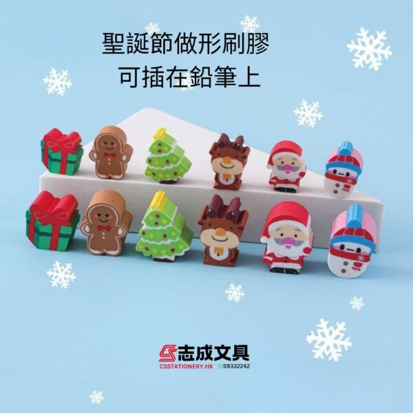 聖誕節 擦膠 (橡皮擦) 6小塊一套 可插在鉛筆上 (大碼)