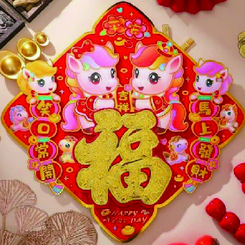 開運金馬可愛 揮春 (福旺 馬上發財 笑口常開)