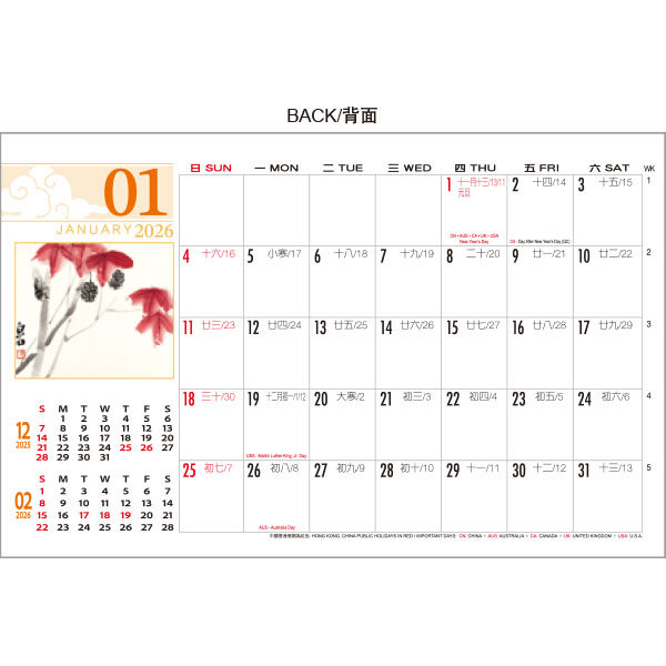 此款印有香港,中國,美國,英國,加拿大,澳洲公眾假期