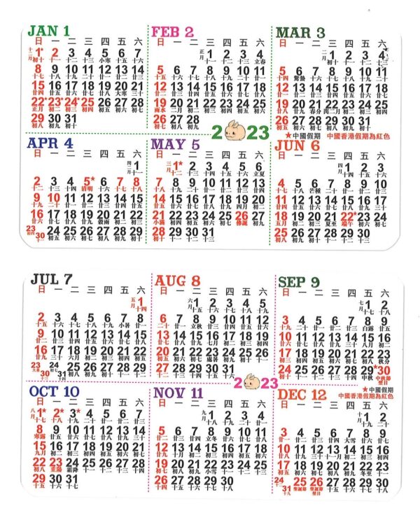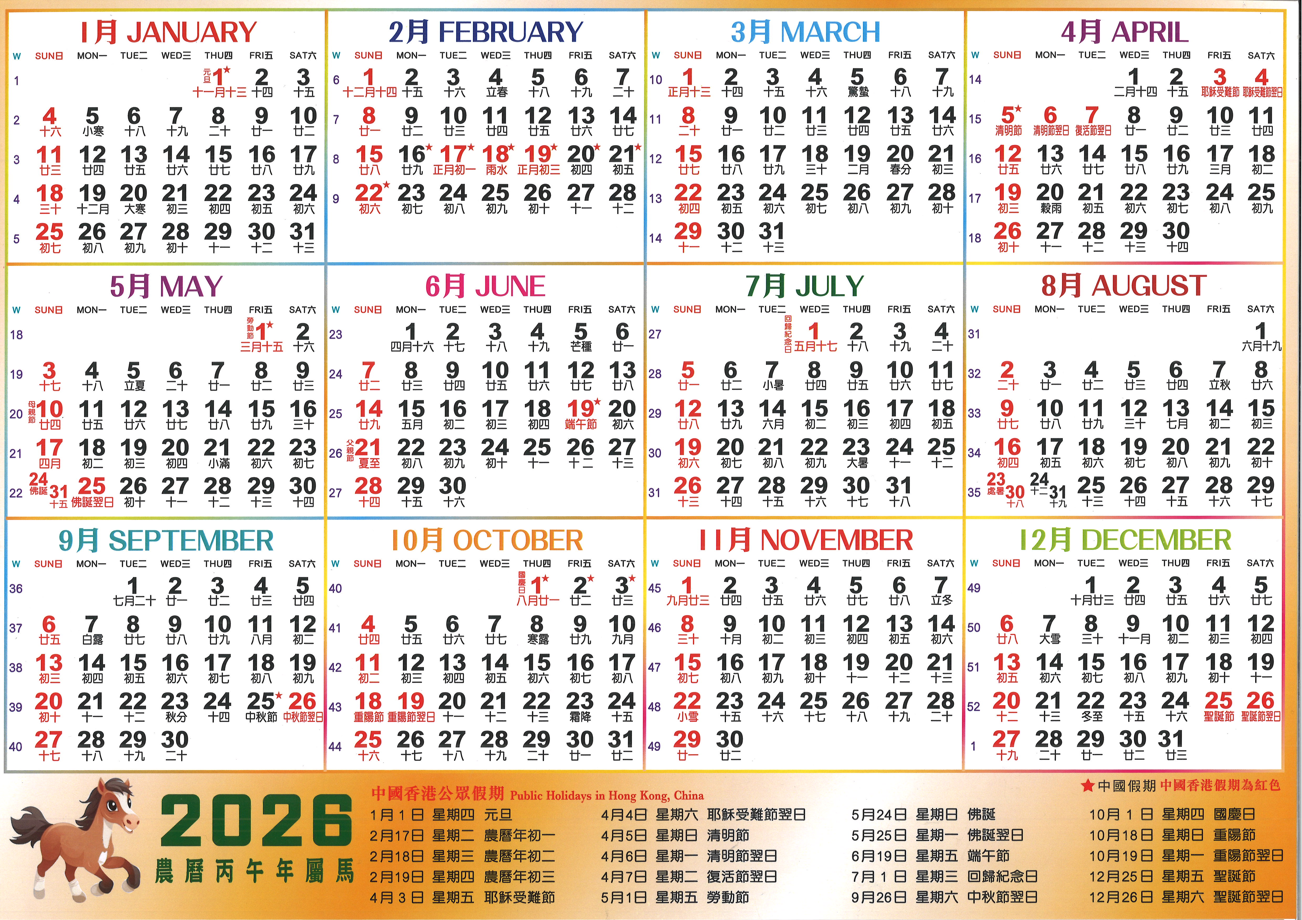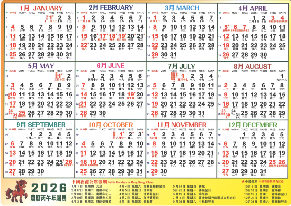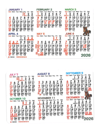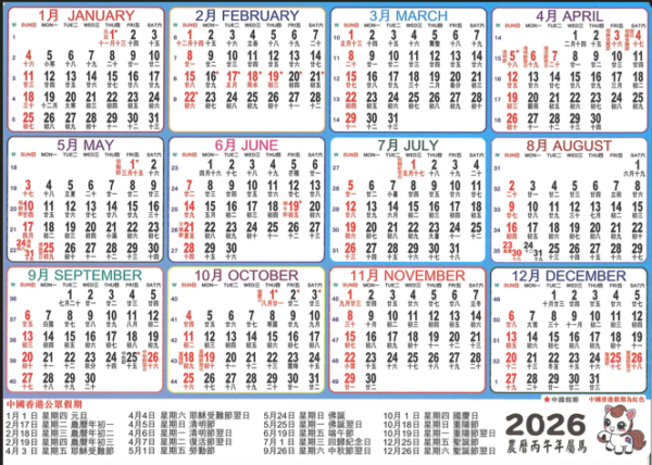 2026年 A3 特大型年曆咭/ A4 大型年曆咭/ A5 中型年曆咭/ 細年曆咭
