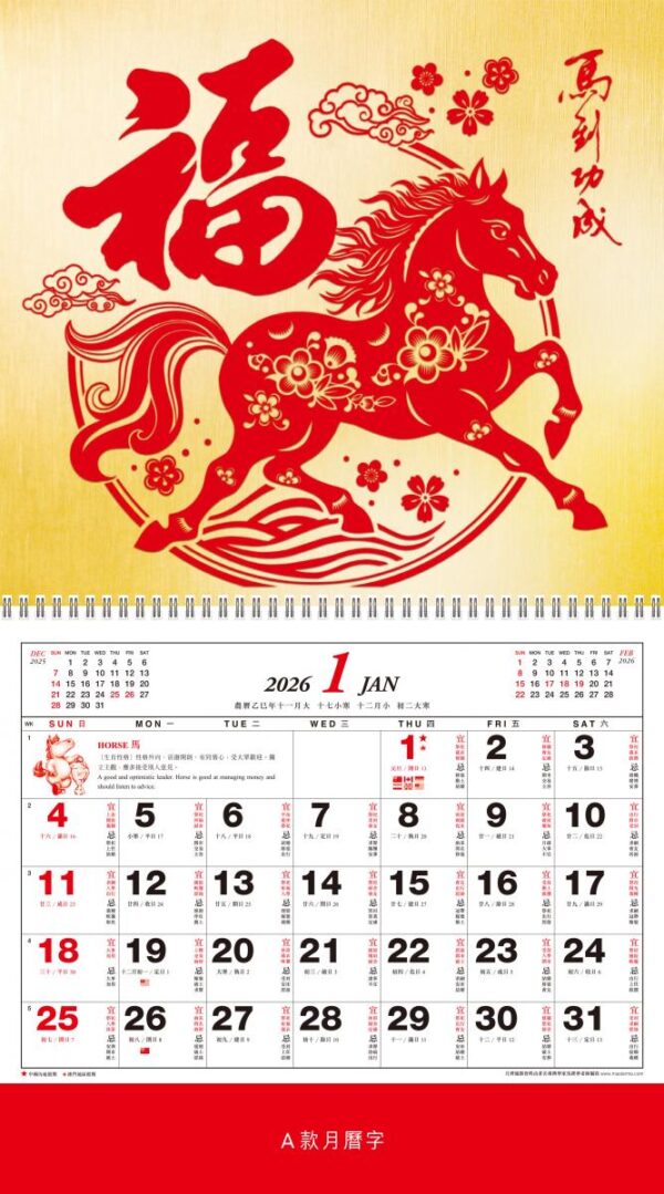 2026年 H88-19 植絨燙金福曆 (馬到功成) (預 8月尾有貨, 請來電查詢)