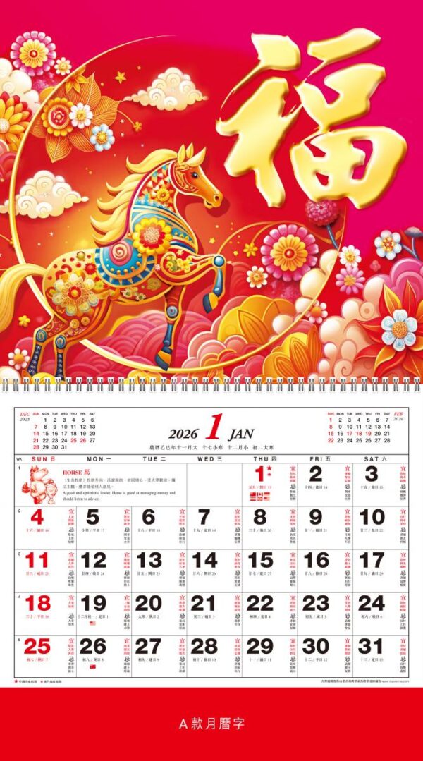 2026年 H88-29 彩色燙金福曆 (歡慶馬年) (預 8月尾有貨, 請來電查詢)
