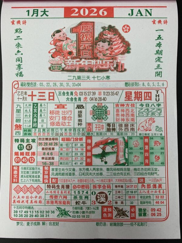 2026年 六合家中寶 / 六合彩 16K 通勝日曆 (190 x 260mm)