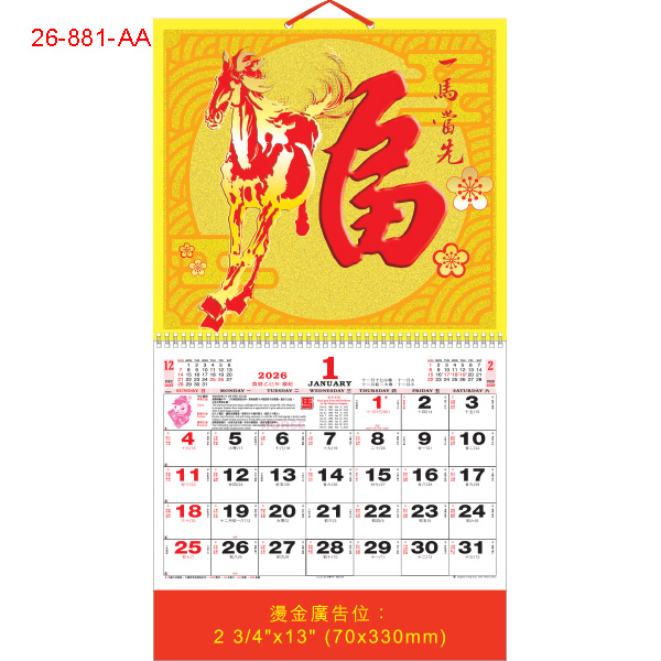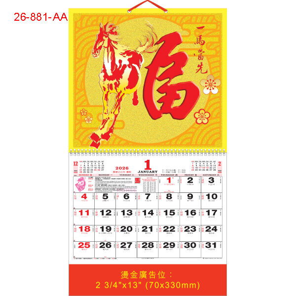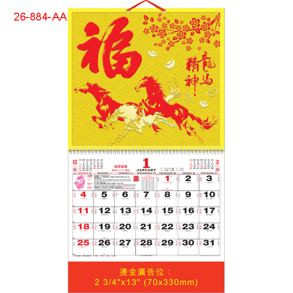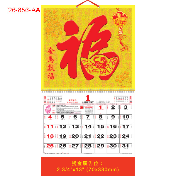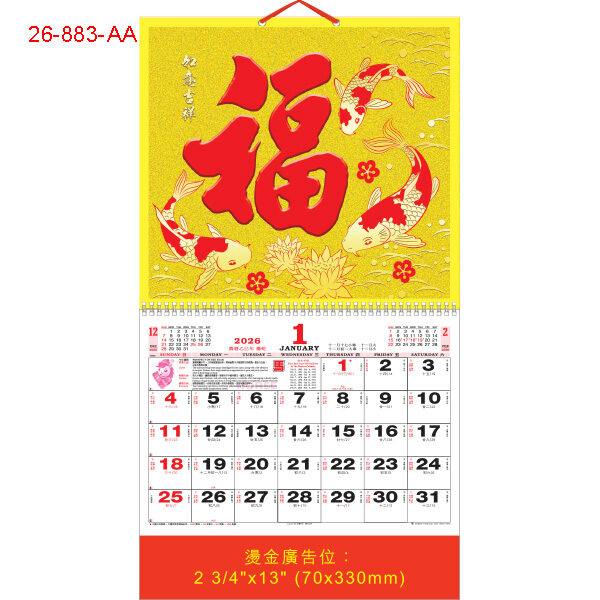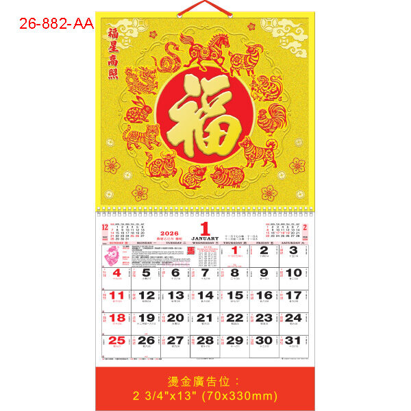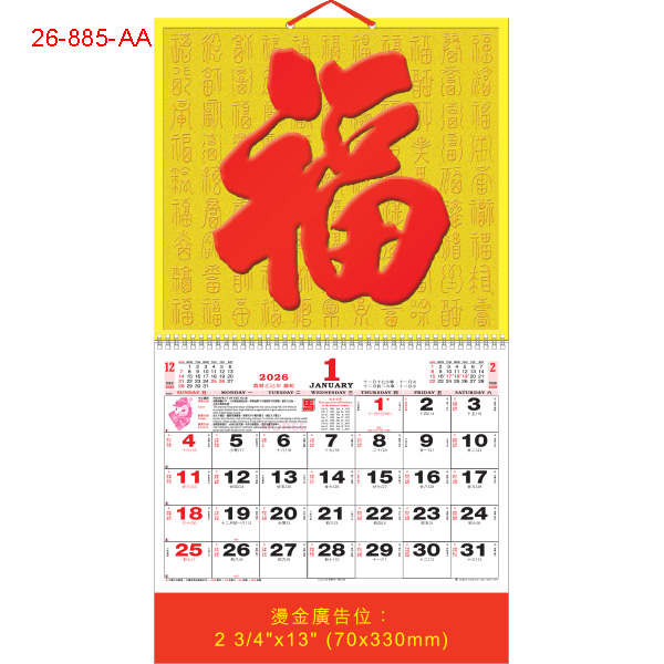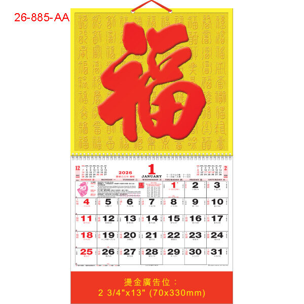 2026年 26-881-AA ~26-887-AA 金貴麗福曆 (預 8月尾有貨, 請來電查詢)