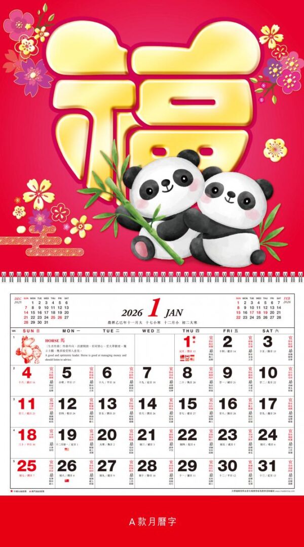2026年 H88-32 彩色燙金福曆 (幸福美滿) (預 8月尾有貨, 請來電查詢)