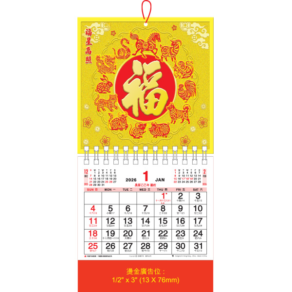 2026年 TC26-S01~TC26-S05 迷你百福月曆 / 迷你福 (預 8月尾有貨, 請來電查詢)