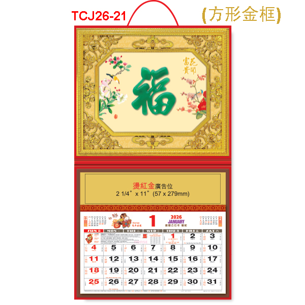 TCJ26-21 仿古玉(方形金框)工藝福曆 (福到萬家) (預 8月尾有貨, 請來電查詢)