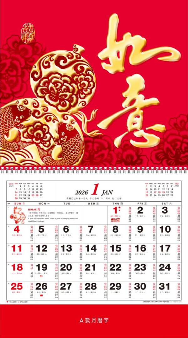 2026年 H88-13 高級花紙福曆 (如意吉祥) (預 8月尾有貨, 請來電查詢)