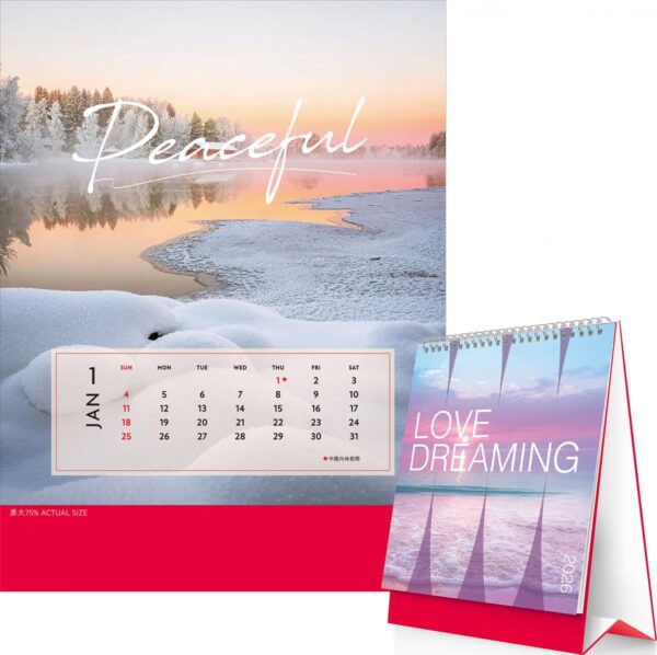 用紙: 230g 粉咭 包裝: 50套 / 17kgs / 38 x 28 x 27cms 尺寸: 180 x 204mm (7″ x 8″) 廣告位: 160 x 25mm (6.25″ x 1″) 版本: 印有農曆及中港假期