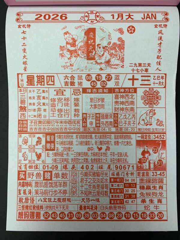 2026年 搖錢樹 / 六合彩 16K 通勝日曆 (190 x 260mm)