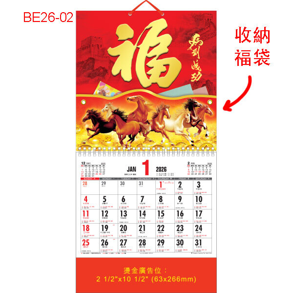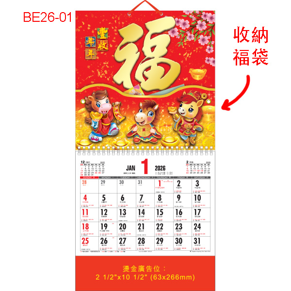 2026年 BE26-01 ~ BE26-02 中型 “袋鼠式” 福曆 (預 8月尾有貨, 請來電查詢)