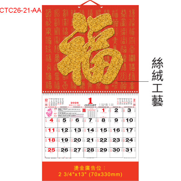2026年 CTC26-21-AA 絲絨“福字閃金粉”福曆 (預 8月尾有貨, 請來電查詢)