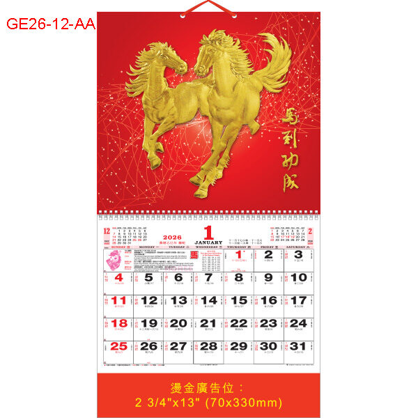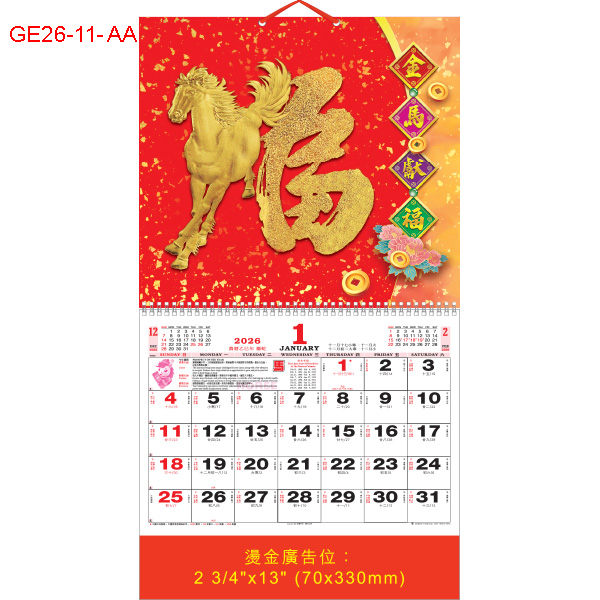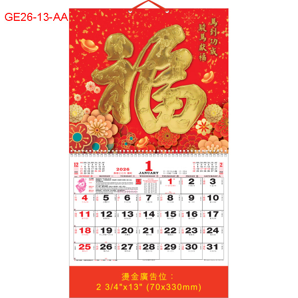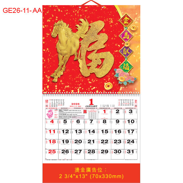 2026年 GE26-11-AA ~ GE26-13-AA 金浮雕福曆 (預 8月尾有貨, 請來電查詢)
