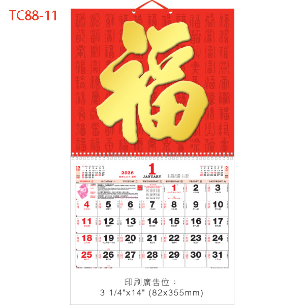 配印刷廣告,雙色月曆肉 (此款印刷肉沒有紅底咭)