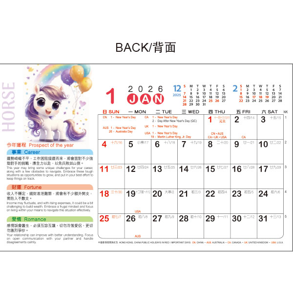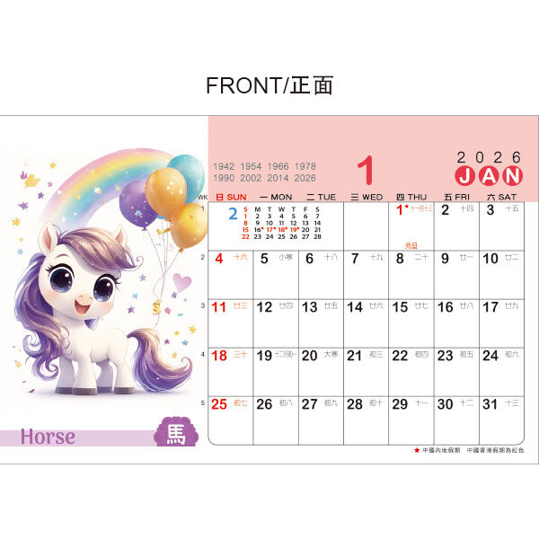 TCB2601R 紅色座 此款印有香港及中國公眾假期