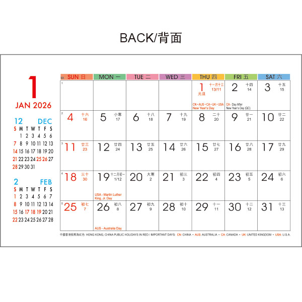 TCB2602R 紅色座 此款印有香港及中國公眾假期