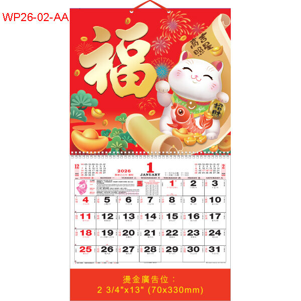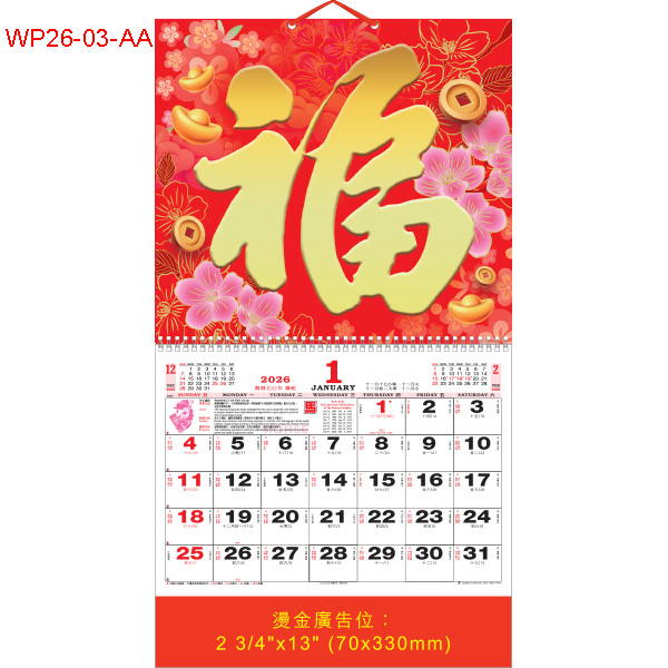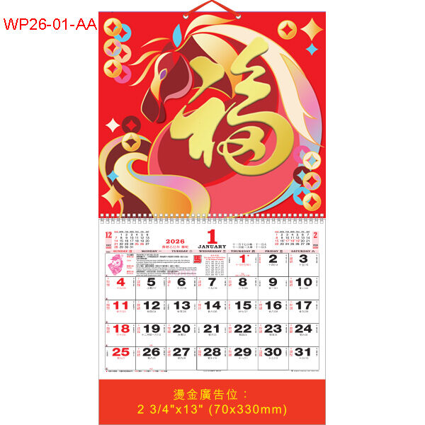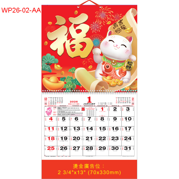 2026年 WP26-01-AA ~ WP26-04-AA 高級珠光紙福曆 (預 8月尾有貨, 請來電查詢)