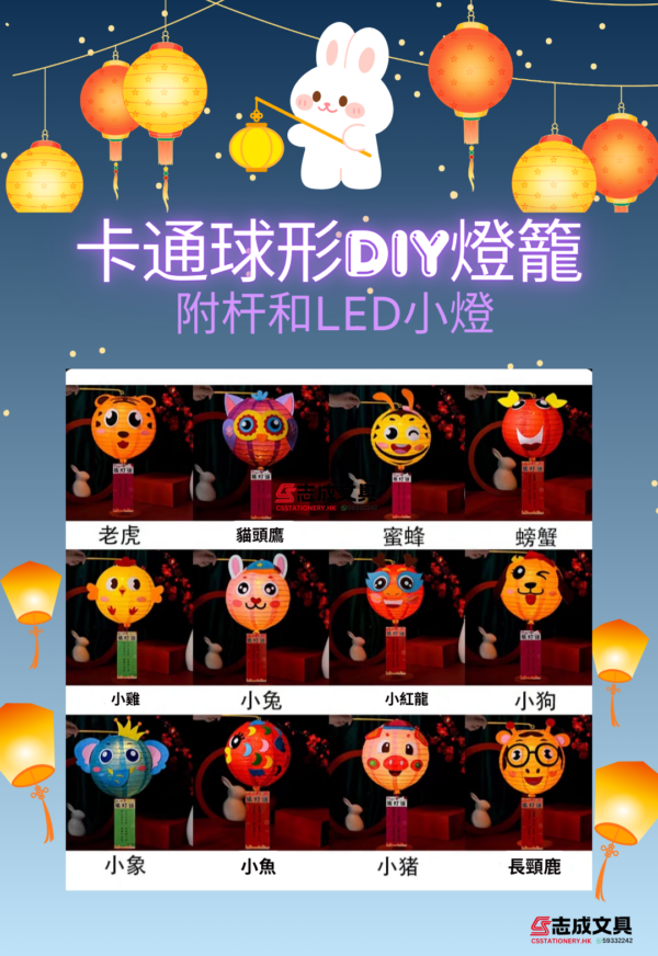 <中秋DIY> CSAFDIY08 中秋DIY 動燈籠 DIY 手工材料包 動物燈籠 自製燈籠材料包 連LED 燈和桿 每款只售$18