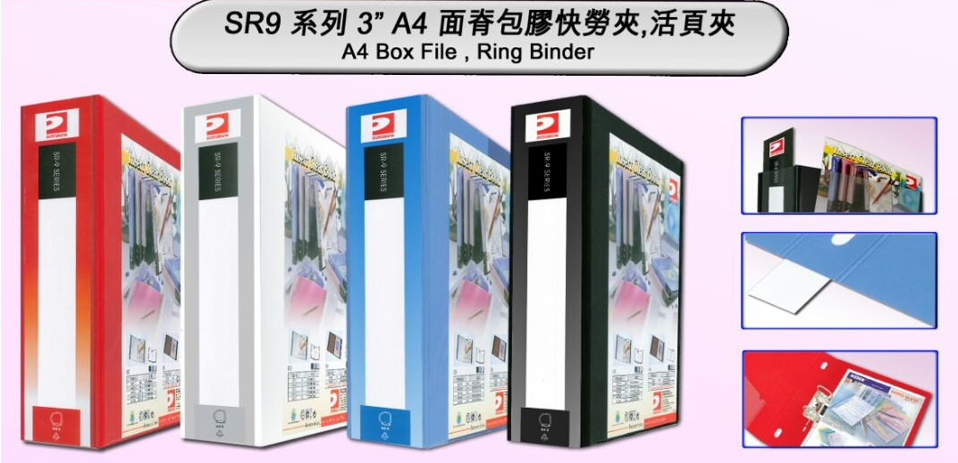 DATA BANK NO. SR947 A4 2D-Ring 3″ 面脊包膠活頁夾 (實色全膠)