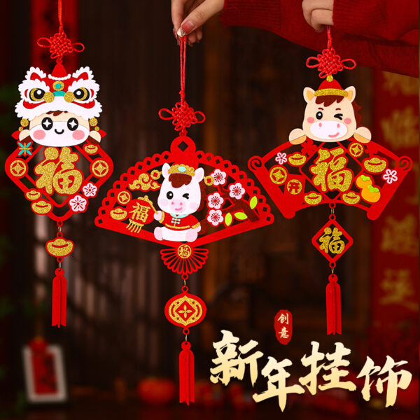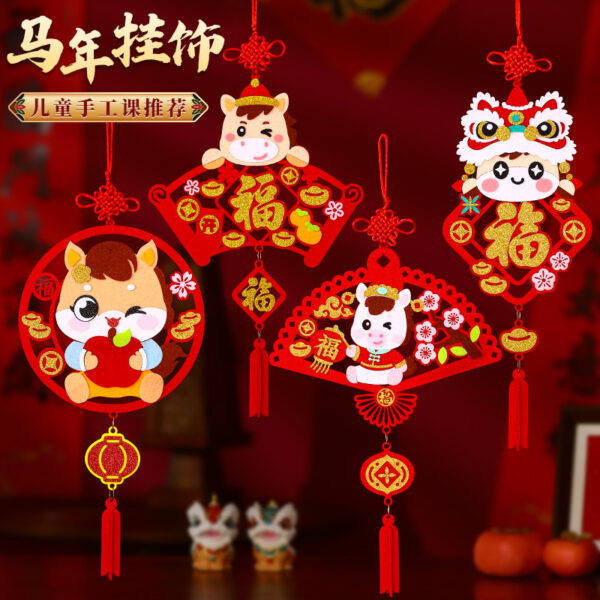 DIY 新年材料包 ~ 元旦兒童手工黏貼材料包 馬年幼兒園不織佈掛飾 (共4款)