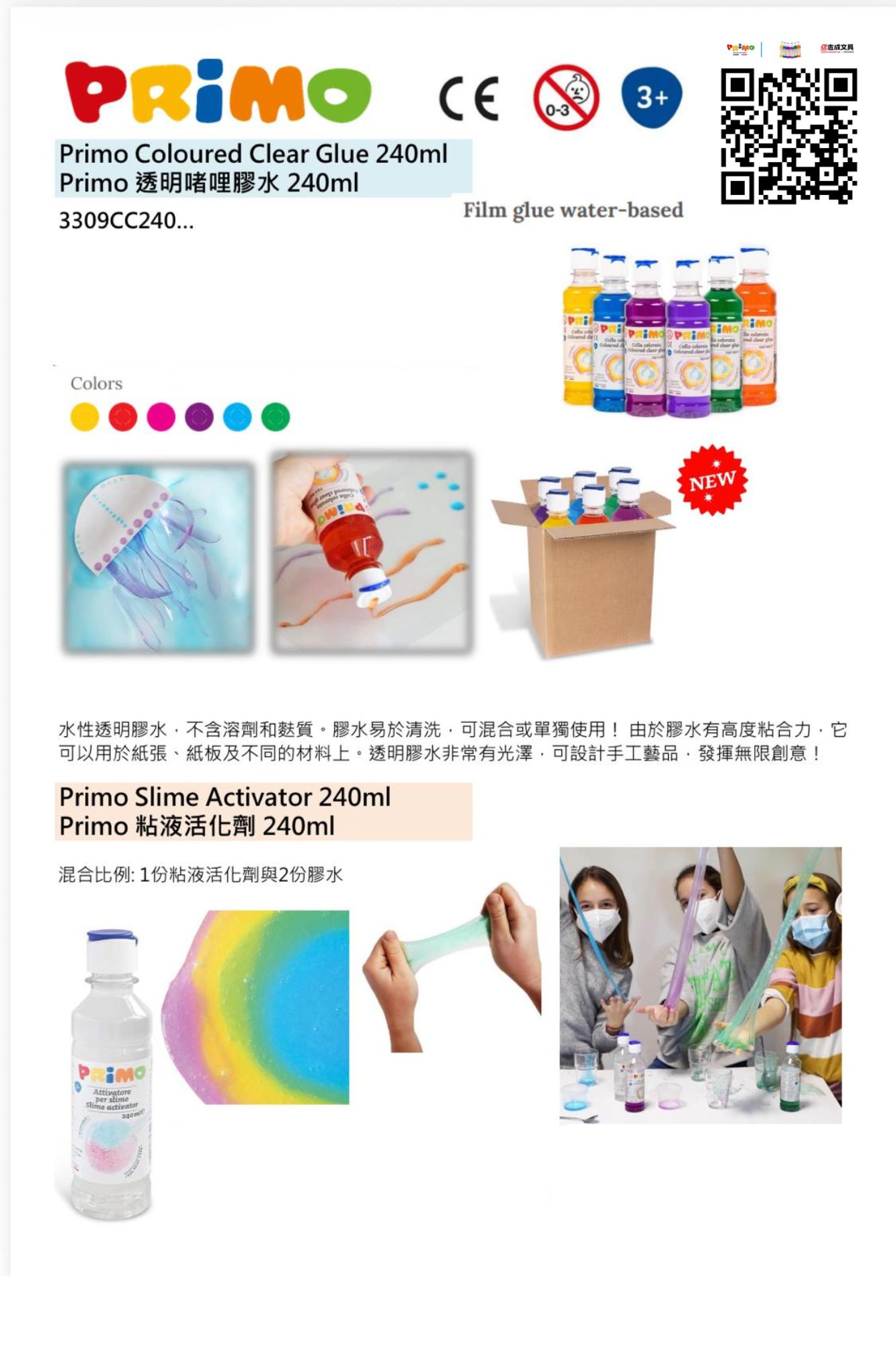 顏色: 2色 (彩色啫哩膠水) + 1 種粘液活化劑