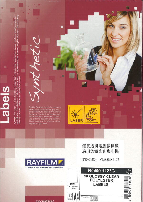 RAYFILM NO. VLASER1123 A4 LASER 優質透明電腦膠標籤, 適用於激光和複印機 ~ 10張